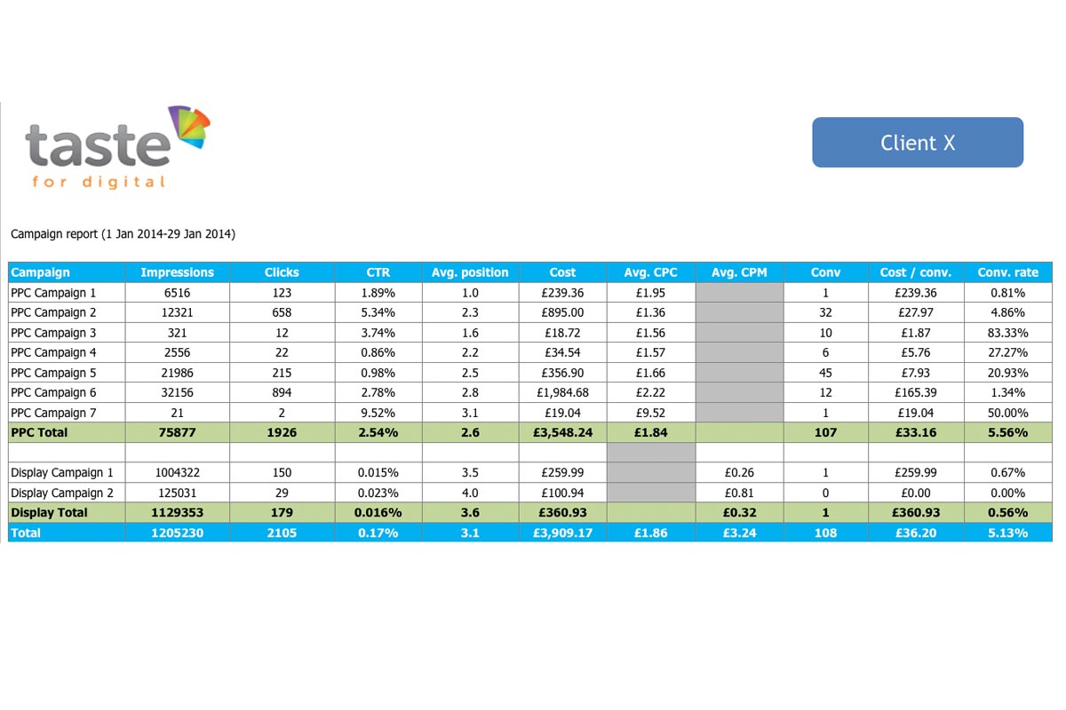 When you become a client of taste for digital we will send you results to show how your campaign is progressing. The frequency of the results will depend on your monthly spend with everyone receiving results at least monthly.