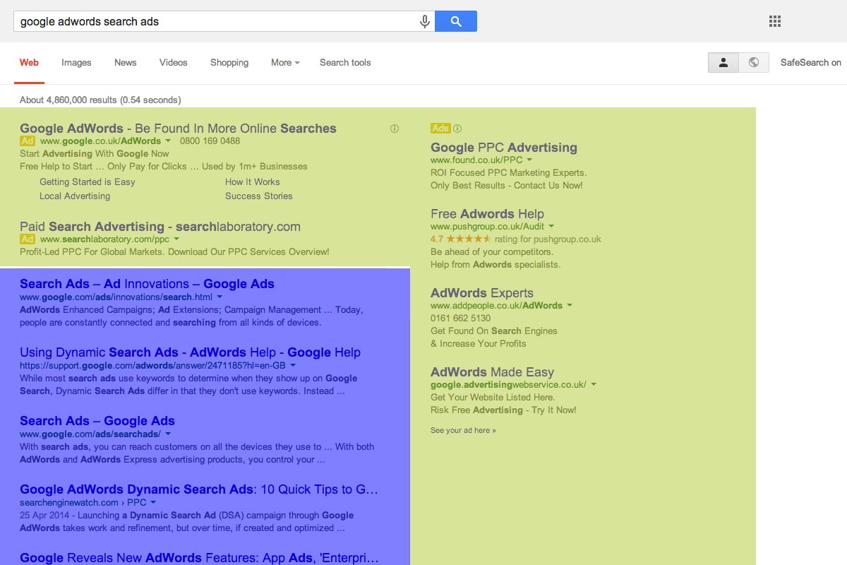 Even if you have Google places set up and your site ranks well for key searches in the natural results, you will still be missing out on lots of new customers. Paid search ads crowd the results page and the ads at the top, just under the search box, always get the most clicks. We work to dominate this space for our clients and you can see an example in our blog on our work for travel company All Leisure Group.(link to blog).